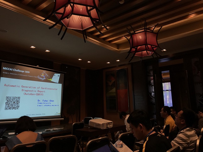 10月13日,厦大媒体分析与计算实验室(MAC LAB)博士生陈福海代表实验室和MICCAI 2019 AutoGen-CDR19 挑战赛组织成员参加了在深圳举办的国际医学图像分析领域顶级会议MICCAI 2019,并为AutoGen-CDR19挑战赛作了题为“心血管诊断报告自动生成”的报告。报告主要汇报了该挑战赛的意义、数据集、组织的规划与实施情况、参赛情况以及未来展望。