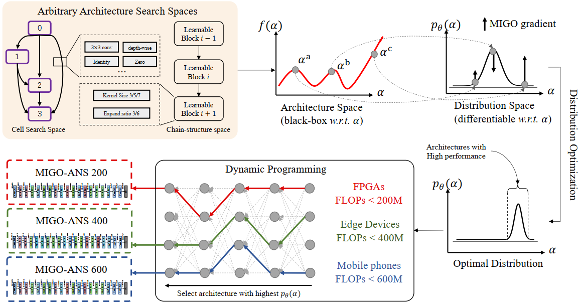 近日,国际顶级学术期刊 《IEEE Transactions on Pattern Analysis and Machine Intelligence》(PAMI)接收了厦门大学信息学院纪荣嵘教授团队的最新研究成果“MIGO-NAS: Towards Fast and Generalizable Neural Architecture Search”。PAMI是计算机学科领域最顶级的国际期刊,其影响因子17.861。该论文提出了一种基于快速泛化性好的神经网络结构检索技术,简称MIGO-NAS。