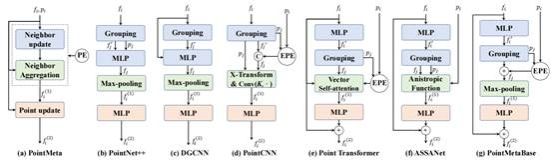 本文中提出了一个三维点云分析网络的统一框架,称为PointMeta,流行的三维点云分析方法可以适合该框架。这带来了三个好处。首先,它允许我们以公平的方式比较不同的方法,并使用快速实验来验证从比较中总结出来的任何经验观察或假设。其次,PointMeta框架所提供的视野使我们能够思考不同的组件,并重新审视流行方法所做出的共同信念和关键的设计决策。第三,基于前两种分析的经验教训,通过对现有方法进行简单的调整,我们能够得到出一个高效的基础构建块,称为PointMetaBase。通过在具有挑战性的基准上进行的广泛实验,它显示出非常强的效率和有效性的性能。在S3DIS数据集上,PointMetaBase只用2%/11%/13%的计算成本超过了0.7%/1.4/%2.1%之前最先进的方法。