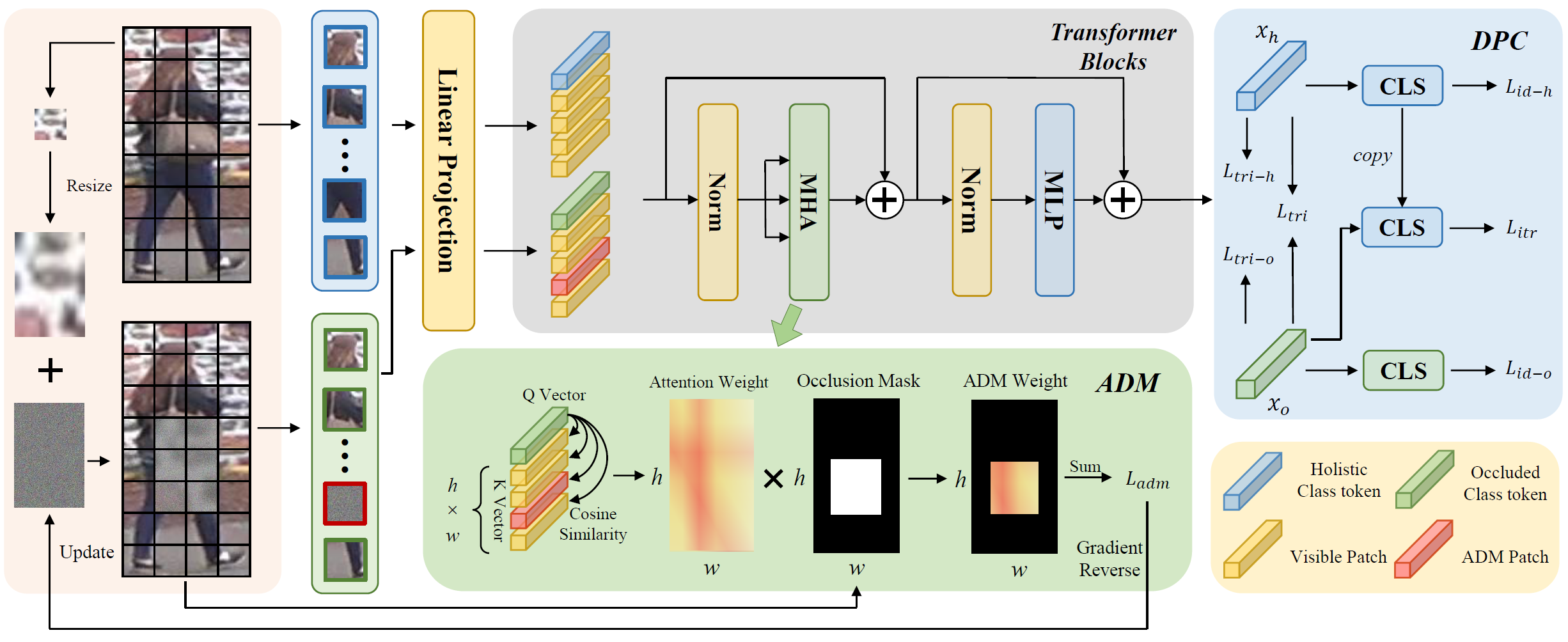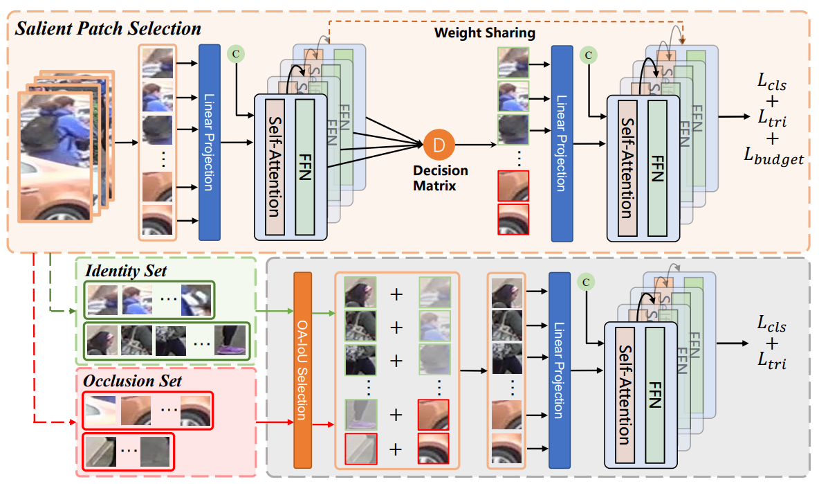 对于遮挡行人重识别问题,当前常用的数据驱动的增强方式主要遵循随机擦除模式,这些策略通常使用随机生成的噪声来取代随机选择的图像区域来模拟障碍物。然而,随机策略对位置和内容不敏感,这意味着它们无法在应用场景中模拟真实世界的遮挡情况。为了克服这一限制,充分利用数据集中的真实场景信息,本文提出了一种更直观、更有效的数据驱动策略,称为Saliency-Guided Patch Transfer (SPT)。结合ViT,SPT使用显著性块选择模块来划分人物实例和背景障碍。通过将前景人物实例转移到不同的背景遮挡物图像中,SPT可以轻松生成逼真的遮挡样本。此外,我们提出了一种遮挡感知交并比(Occluded-Aware IoU),并通过结合掩码滚动策略来获得更合适的组合,以及一种类忽略策略来实现更稳定的处理过程。对被遮挡和整体人物重识别任务进行的广泛实验评估表明,在基于ViT的不同ReID算法中,SPT在遮挡行人重识别问题上提供了显著的性能增益。