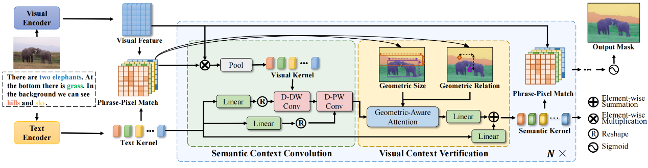本文为全景叙事分割任务提出了一种名为XPNG的模型,用于解决此前模型缺乏实例之间语义关系建模的问题。XPNG首先提出语义上下文卷积模块(SCC),利用文本模态作为语义先验信息来构建短语之间的内部关系,从而提升短语表征的区分性和指向性。此外,XPNG还设计了视觉上下文验证模块(VCV)来构建实例之间的几何关系,以此消除来自文本的先验语义偏差并进一步细化特征。实验结果表明,XPNG在PNG数据集上取得了最先进的性能。