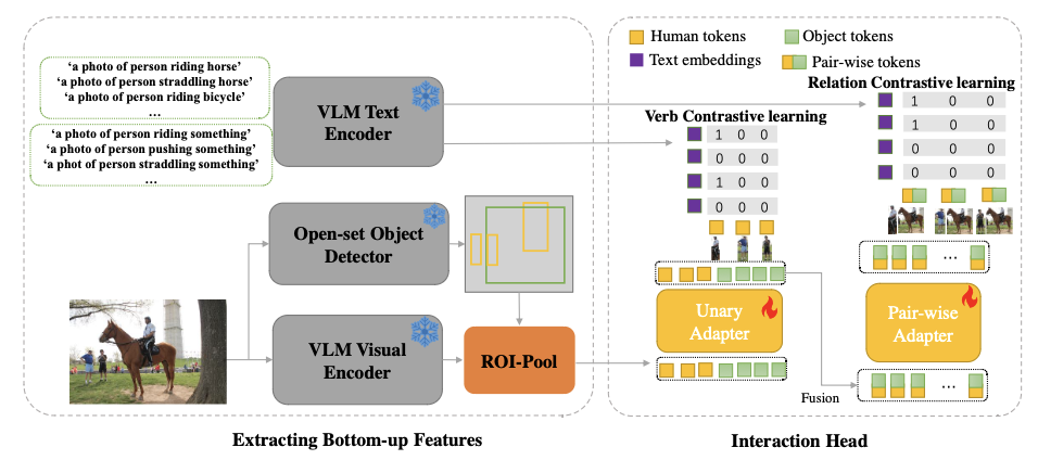 本文致力于开放领域的人体对象交互(HOI)检测任务。挑战在于识别全新的、超出领域的关系,而不是在领域内已经取得零样本HOI检测改进的关系。为了解决这一挑战,本文引入了一种简单的解耦HOI检测(DHD)模型,通过将开放集对象检测器与视觉语言模型(VLM)相结合,实现对新颖关系的检测。本文采用了一种解耦的图像-文本对比学习度量进行训练,并通过轻量级的单元和成对适配器将底层视觉特征连接到文本嵌入。本文的模型能够从开放集对象检测器和VLM中受益,以检测新的动作类别并将动作与新的对象类别相结合。此外,本文还提出了VG-HOI数据集,这是一个包含超过17,000个HOI关系的全面基准,适用于开放集场景。实验结果表明,本文的模型能够检测未知的动作类别并结合未知的对象类别。而且,它可以在仅在600个HOI类别上进行训练的情况下泛化到超过17,000个HOI类别。