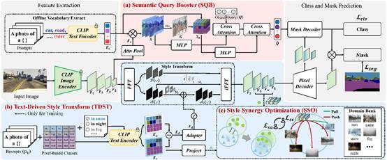 简介:域泛化语义分割 (DGSS) 旨在利用源域数据增强跨未知目标域的语义分割泛化。当前的研究主要集中在特征归一化和域随机化,这些方法表现出明显的局限性。基于特征归一化的方法在约束特征空间分布的过程中往往会混淆语义特征,导致分类误判。基于域随机化的方法由于风格转换的不可控性,经常会包含与领域无关的噪声,从而导致分割模糊。为了应对这些挑战,本文引入了一个用于语义一致性预测和风格多样性泛化的新颖框架,名为 SCSD。它包含三个关键组件:首先,语义查询增强器旨在增强掩码解码器中对象查询的语义感知和辨别能力,实现跨域语义一致性预测。其次,本文提出了一个文本驱动的风格转换模块,利用域差异文本嵌入可控地引导图像特征的风格转换,从而增加域间风格多样性。最后,为了防止相似域特征空间的崩溃,本文引入了一种风格协同优化机制,通过协同加权风格对比损失和风格聚合损失来强化域间特征的分离和域内特征的聚合。大量实验表明,所提出的 SCSD 明显优于现有的最先进方法。
