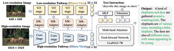 简介:尽管现有的多模态大型语言模型(MLLMs)取得了显著进展,但在细粒度视觉识别方面仍存在不足。与以往研究不同,本文从图像分辨率的角度出发,发现将低分辨率和高分辨率视觉特征相结合可以有效缓解这一问题。基于此,提出了一种新颖且高效的方法——分辨率混合适应(MRA)。MRA为不同分辨率的图像设置了两条视觉路径,并通过新颖的分辨率混合适配器(MR-Adapters)将高分辨率视觉信息嵌入低分辨率路径中,这一设计还大幅减少了MLLMs的输入序列长度。为了验证MRA的有效性,将其应用于一种名为LLaVA的最新MLLM,并将新模型命名为LLaVA-HR。在11个视觉语言(VL)任务上的广泛实验表明,LLaVA-HR在8个VL任务上的表现优于现有的MLLMs。