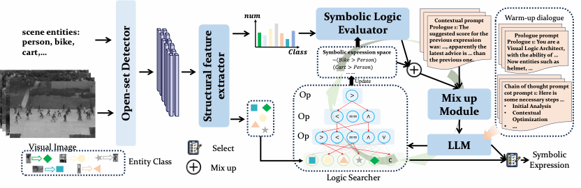 简介:本文提出了一个创新的框架,旨在让普通的目标检测器不仅能“看见”物体,更能“理解”正在发生的复杂事件。它通过结合大语言模型(LLM)的引导和符号推理来实现这一目标。其核心是一个“即插即用”的模块,无需进行昂贵的额外训练,可以直接与现有的物体检测器配合使用。该模块会自动分析检测到的物体之间的关联和模式,并由LLM引导,进而发现能够定义一个“事件”的逻辑规则。