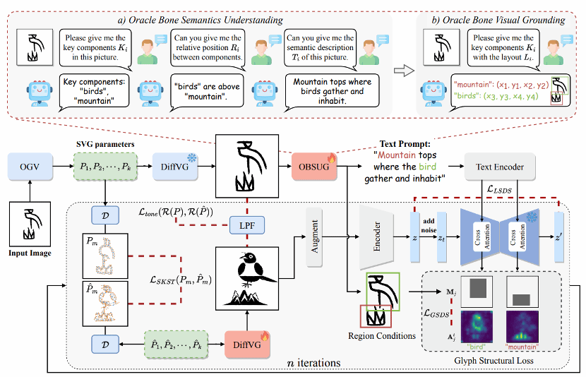 简介:甲骨文是最早的古代语言之一,它封装了古代文明的文化记录和知识表达。尽管发现了大量的甲骨字,但只有一部分甲骨字被破译。未破译甲骨字具有复杂的结构和抽象的图像,对破译构成了重大挑战。为了应对这些挑战,本文提出一种两阶段语义排版框架 OracleFusion。在第一阶段,利用具有增强空间感知推理(SAR) 的多模态大型语言模型分析甲骨文的字形结构并执行关键组件的视觉定位。在第二阶段,提出了甲骨结构向量融合方法(OSVF)。该方法结合字形结构约束和字形维护约束,确保生成语义丰富的矢量字体。大量的定性和定量实验表明:OracleFusion 在语义、视觉吸引力和字形维护方面优于基线模型,显著提高了甲骨字的可读性和美学质量。此外,OracleFusion 还提供了关于未破译甲骨字的专家级见解,使其成为推进甲骨文破译的宝贵工具。