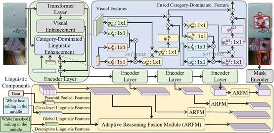 指代图像分割(Referring Image Segmentation,RIS)是视觉-语言理解中的核心任务,旨在根据自然语言描述分割出图像中的特定目标。尽管该技术在遥感领域已取得长足进步,但低空无人机(Low-Altitude Drone,LAD)场景下的指代分割仍鲜有研究。本文提出了RIS-LAD,这是首个专为低空无人机场景打造的细粒度指代图像分割基准数据集,包含13,871组从真实无人机航拍素材中精心标注的图像-文本-掩码三元组,特别关注小目标、密集杂乱物体以及多视角情况。与此同时,本文提出了一种语义感知自适应推理网络(Semantic-Aware Adaptive Reasoning Network),不再将全部语言特征统一注入网络,而是将语义信息分解并自适应地路由至不同阶段。