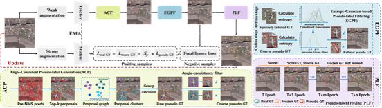 虽然全监督的旋转目标检测在遥感图像理解方面取得了显著进展,但其代价是高强度的人工标注。近年来的研究尝试通过弱监督与半监督学习来缓解这一负担但这些方法忽略了复杂遥感场景中密集标注所带来的困难。本文提出了一种新的任务设定——稀疏标注旋转目标检测(SAOOD),其中每幅图像仅标注部分实例,并进一步提出了解决该设定挑战的方法。具体而言,本文关注该设定中的两个关键问题:(1) 稀疏标注导致模型在有限的前景表征上发生过拟合;(2) 未标注目标(即假负例)会干扰特征学习,提出了S2Teacher,这是一种新的角度一致性引导方法,可由易到难逐步挖掘未标注目标的伪标签,从而增强前景表征;同时,它会对未标注目标的损失进行重加权,以减轻其在训练过程中的影响。大量实验表明,S2Teacher在不同稀疏标注比例下均能显著提升检测器性能,并且在仅使用10%标注实例的情况下,在DOTA数据集上取得接近全监督的性能,有效平衡了精度与标注成本。